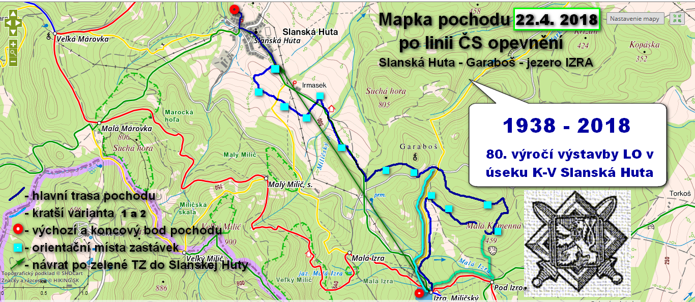 Mapka plánovaného pochodu po línii československého opevnenia – 22.4.2018